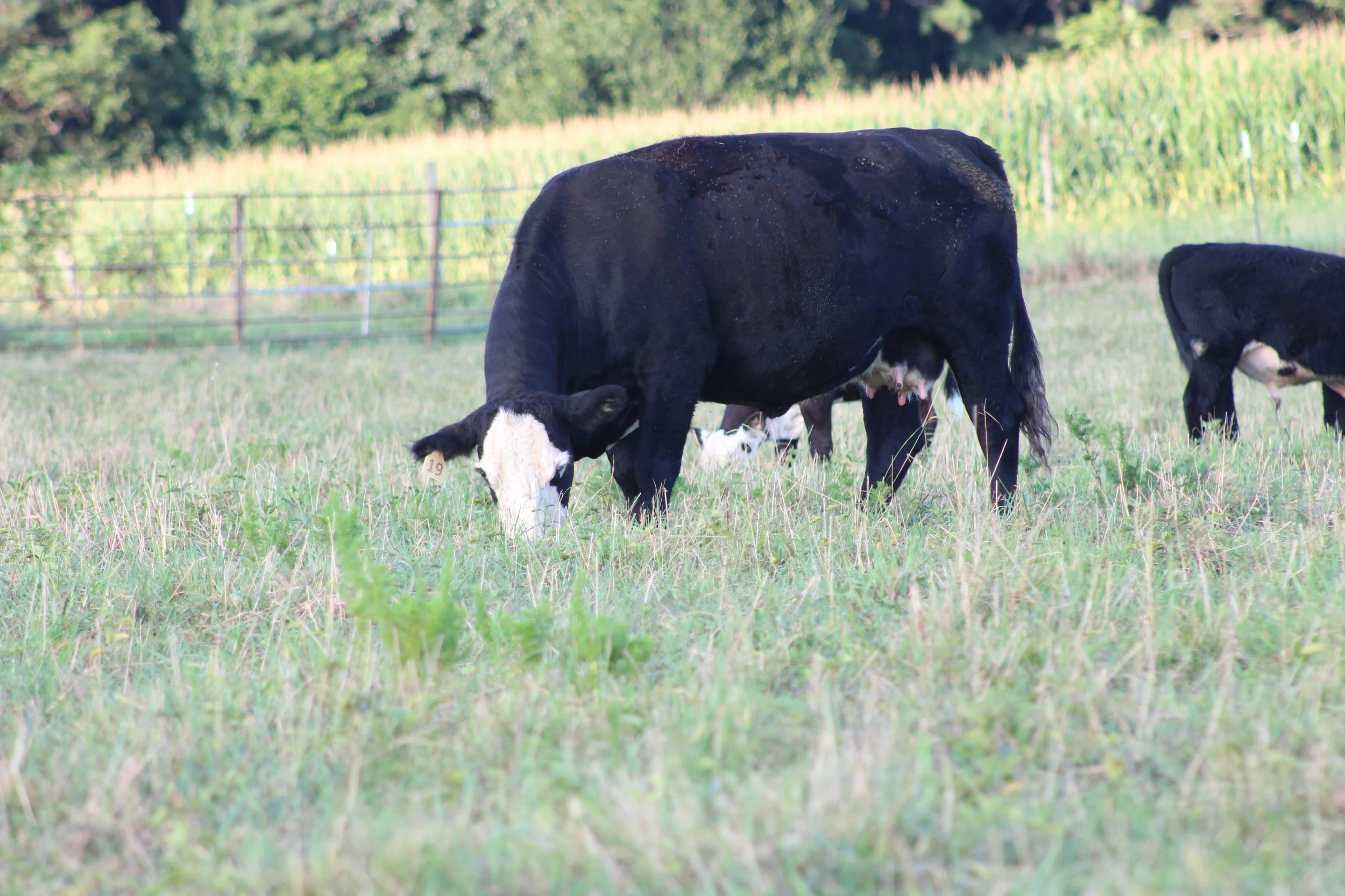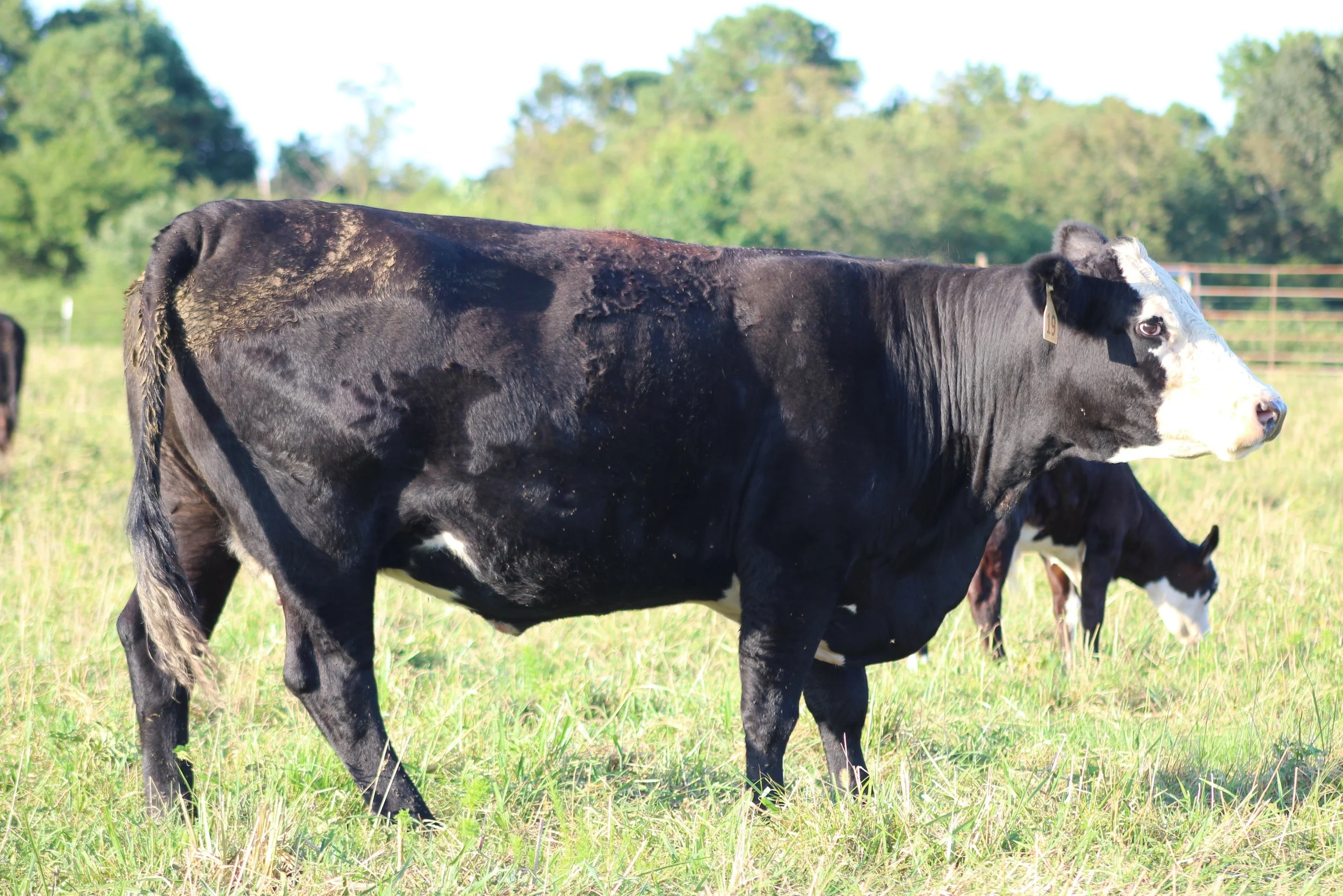Nice older female moderate framed, still has a nice bag; she raised a nice bull calf that we just weaned. Selling exposed 90 days (Jan.1 - April 1 & July 1 - Present) to SNS JM 1801 EL MAGO H006. Looking for a new home, we are keeping heifers and unfortunately something has to leave. UTD on wormer/vaccinations.
